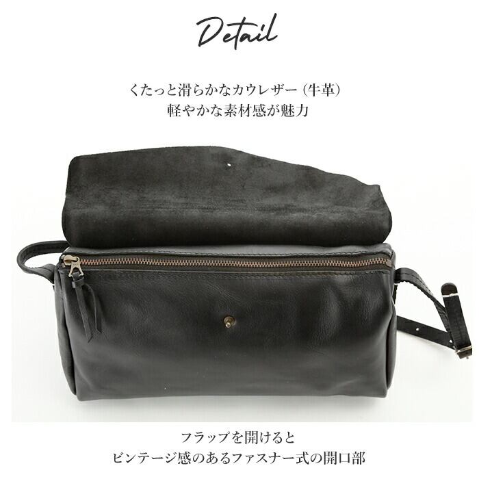 ・本体・ショルダーベルトに軽量で滑らかなカウレザー(牛革)を贅沢に使用した、シンプルなレザーポーチショルダー。