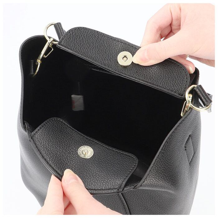 ・開口部はマグネットボタン式のフラップ付きで、中身のこぼれ落ちを防止。