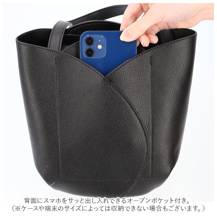 ・背面にスマホをサッと出し入れできるオープンポケット付き。(※ケースや端末のサイズによっては収納できない場合もございます。)