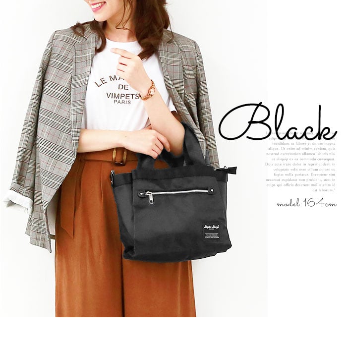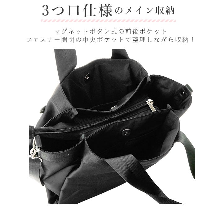 収納たっぷり10ポケットの撥水加工ナイロン調Mトートです。