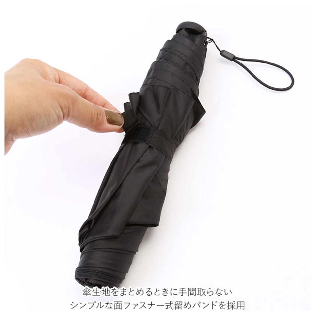 ・傘生地をまとめるときに手間取らない。シンプルな面ファスナー式留めバンドを採用。