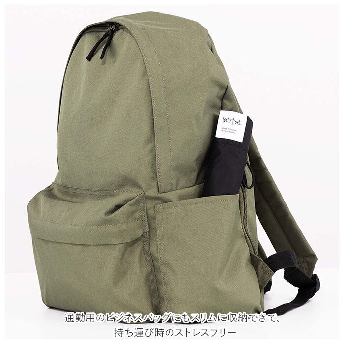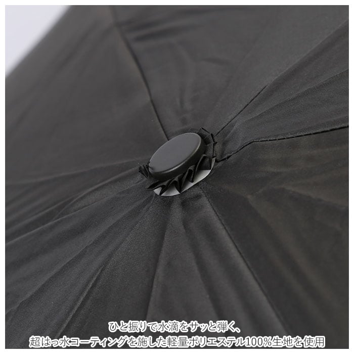 ・ひと振りで水滴をサッと弾く、超はっ水コーティングを施した軽量ポリエステル100%生地を使用。