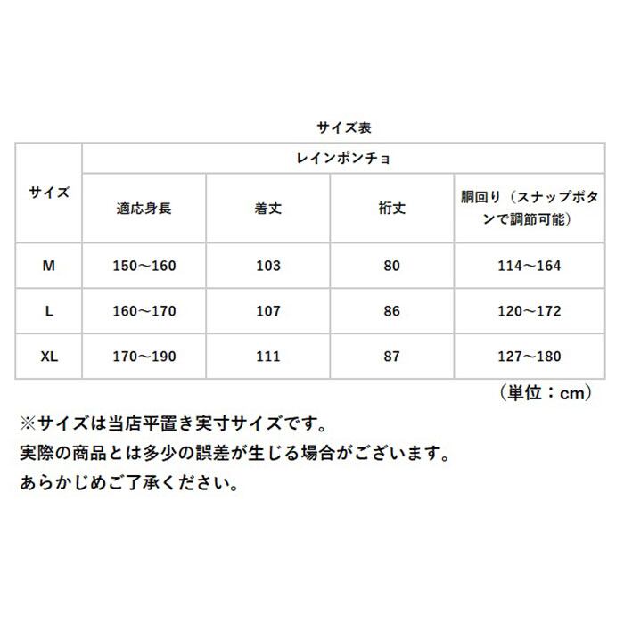 ・撥水性があり、雨水を弾いてくれるレインポンチョ。