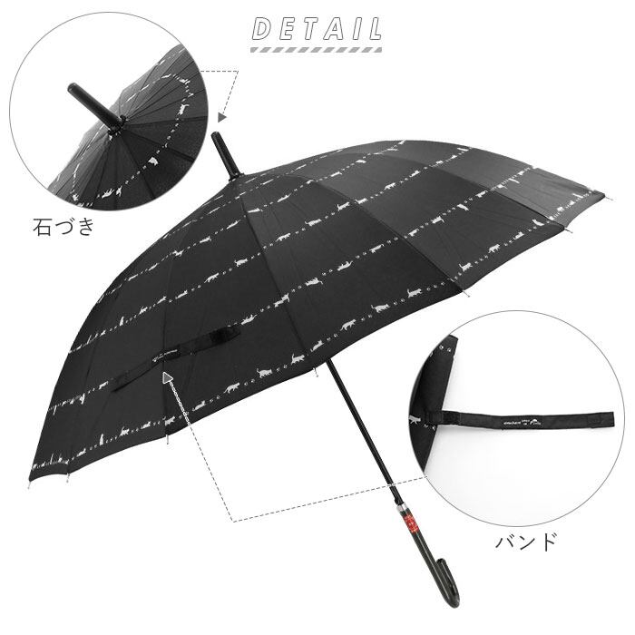 amusant sous la pluie 55cm 16本骨 長傘 グラスファイバー