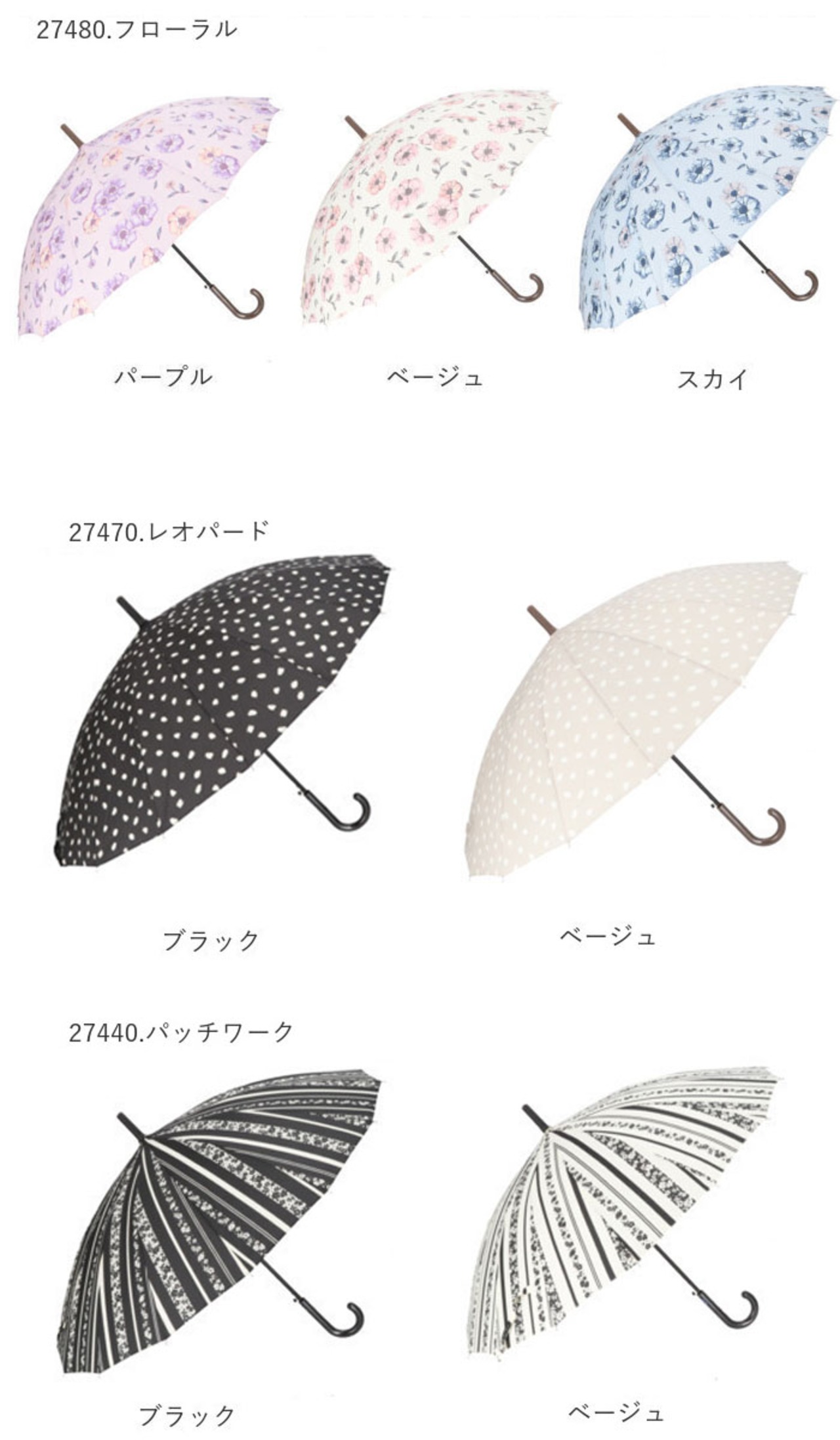 ・どんなファッションにも合わせやすい、シンプルで親しみやすい柄やパターン♪傘生地を自分色に染めて、雨の日だってお洒落にお出かけできる♪