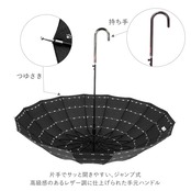 ・どことなく和風なシルエットが印象的な16本骨タイプの長傘。傘骨が通常よりも多くて丈夫なのに、軽量なのが嬉しい♪
