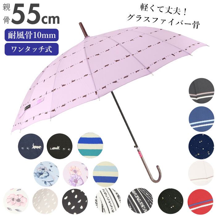 傘 レディース ジャンプ 通販 16本骨 55cm 長傘 可愛い amusant sous la pluie 軽量 おしゃれ 大人 かわいい シンプル 通勤 通学 グラスファイバー骨 丈夫 折れにくい ジャンプ傘 軽い 雨傘