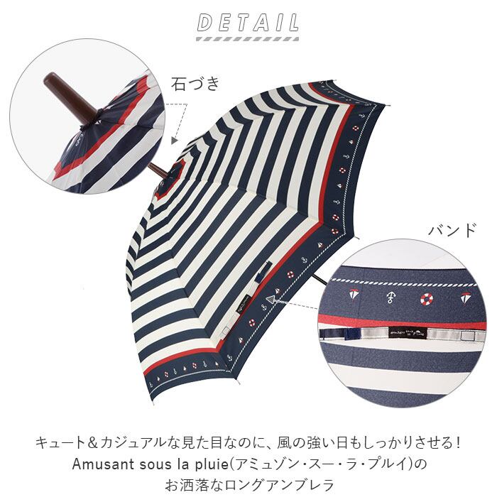 ・キュート&カジュアルな見た目なのに、風の強い日もしっかりさせる!Amusant sous la pluie(アミュゾン・スー・ラ・プルイ)のお洒落なロングアンブレラ。