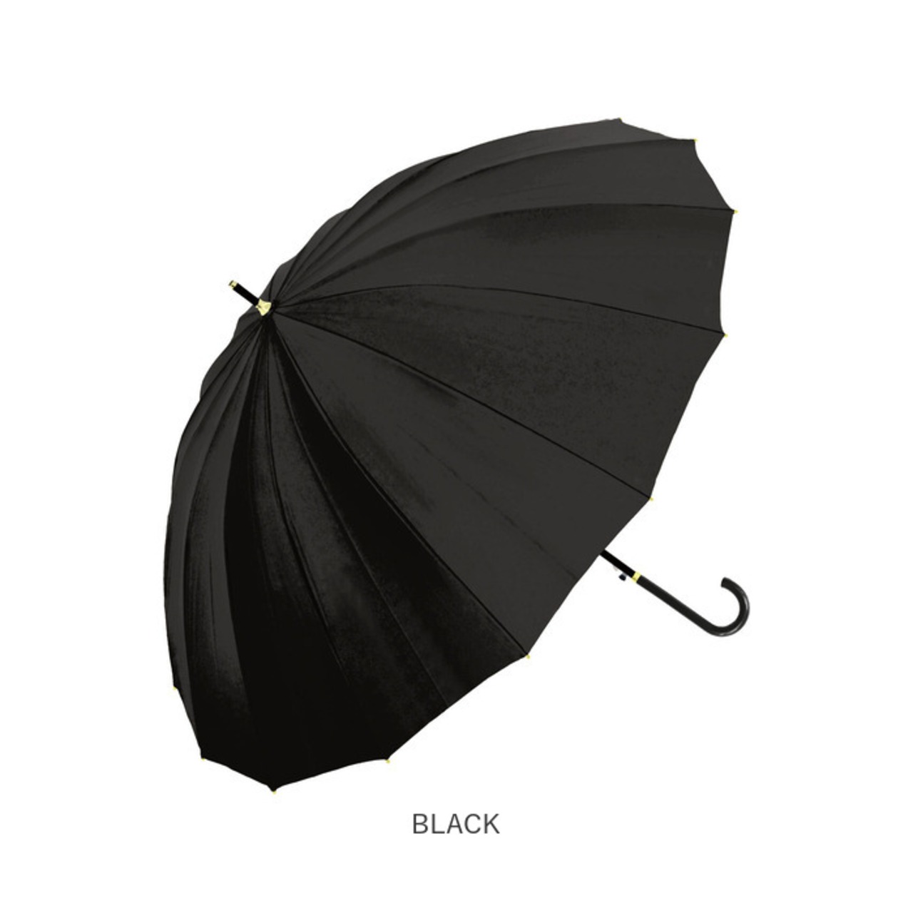 ・傘骨は、和傘のように風雅なシルエットが印象的な16本骨タイプ。軽くて丈夫なグラスファイバー骨で、強い風にも折れにくく安心。