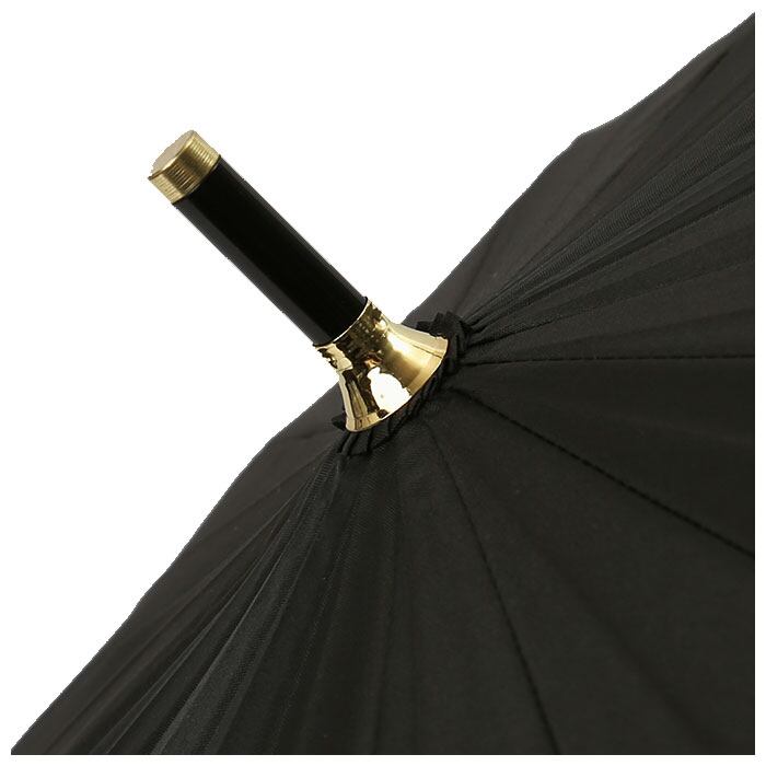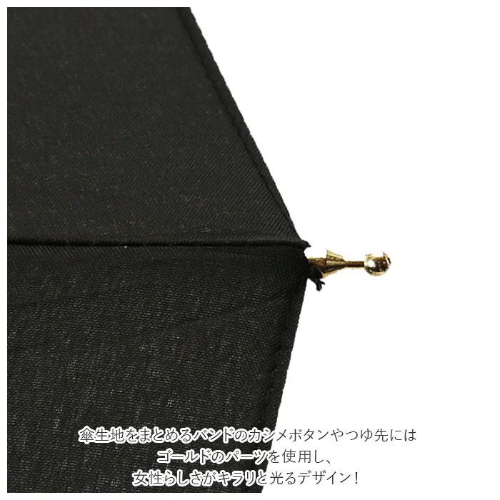 ・傘生地をまとめるバンドのカシメボタンやつゆ先にはゴールドのパーツを使用し、女性らしさがキラリと光るデザイン!
