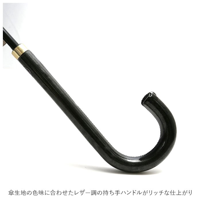 ・傘生地の色味に合わせたレザー調の持ち手ハンドルがリッチな仕上がり。