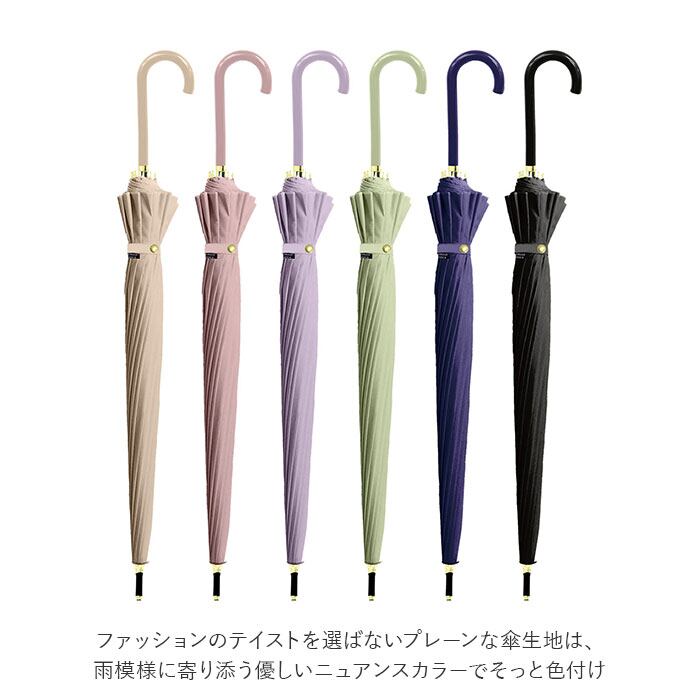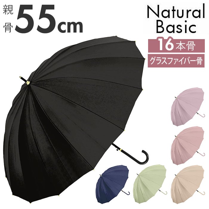 ・雨空に優しく映えるくすみカラー。シンプルかつ上品なデザインで人気の「Natural Basic」シリーズに、「16本骨ロングアンブレラ・無地タイプ」が仲間入り。