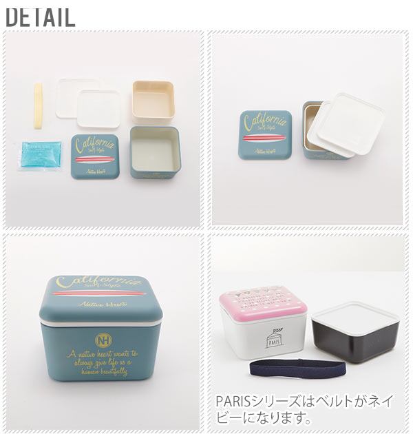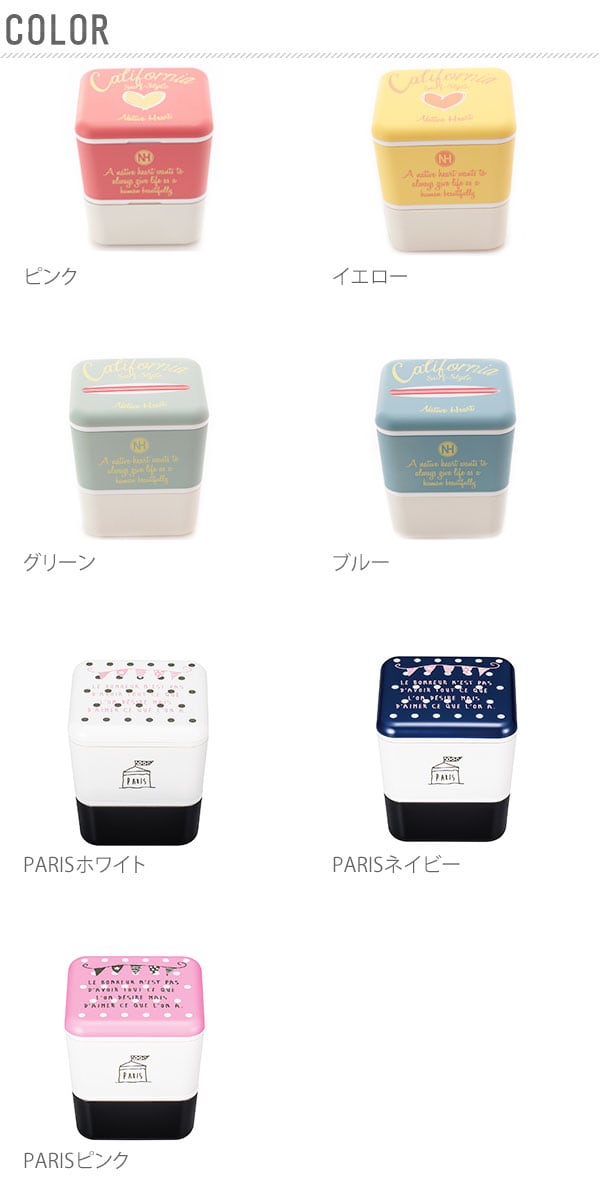 四角の形がとても可愛いお弁当箱♪上段と下段にそれぞれフタがあるので、上段の底にご飯がくっついたり、水分でベタベタになることもありません。電子レンジ対応・食洗機対応なのが嬉しいです♪食べ終わったら下段が上段の中に収まる入れ子式なので帰る時はコンパクトでスリムなサイズで帰りのバッグの中はスッキリ!