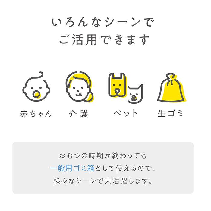 ・ニオわないのでどこにでも置けて、おむつの時期が終わってもいろんなシーンで活用可能!すっきりしたデザインも◎
