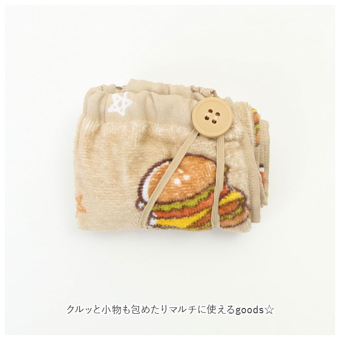 ・ゴムの部分から被ってお食事エプロンにしたり、フックにゴムを引っ掛けてお手拭きタオル、さらにクルッと小物も包めたりマルチに使えるgoods☆