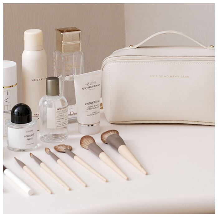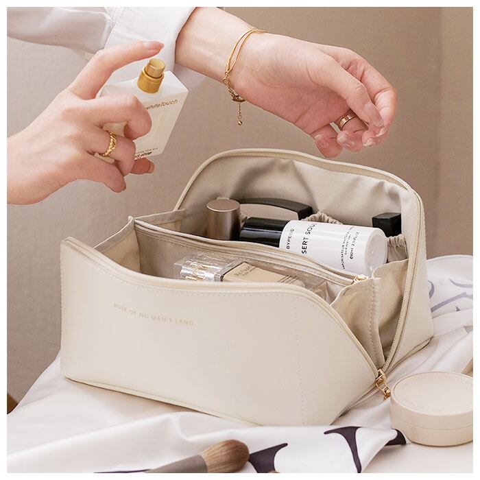 ・化粧品をボトルごと、ライン使いで収納できる大容量が魅力的!お気に入りのメイク道具一式はこのポーチにおまかせ♪