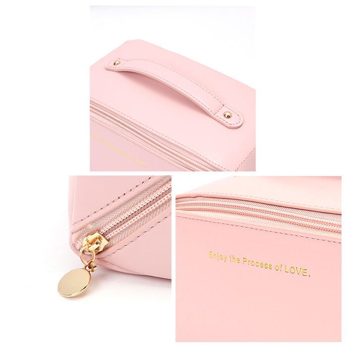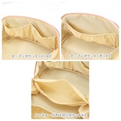 ・リップやハンドクリーム、ヘアアクセサリーなどの細かなグッズも、機能的に配置されたポケットや仕切りで見やすく整理できるのが嬉しいポイント。