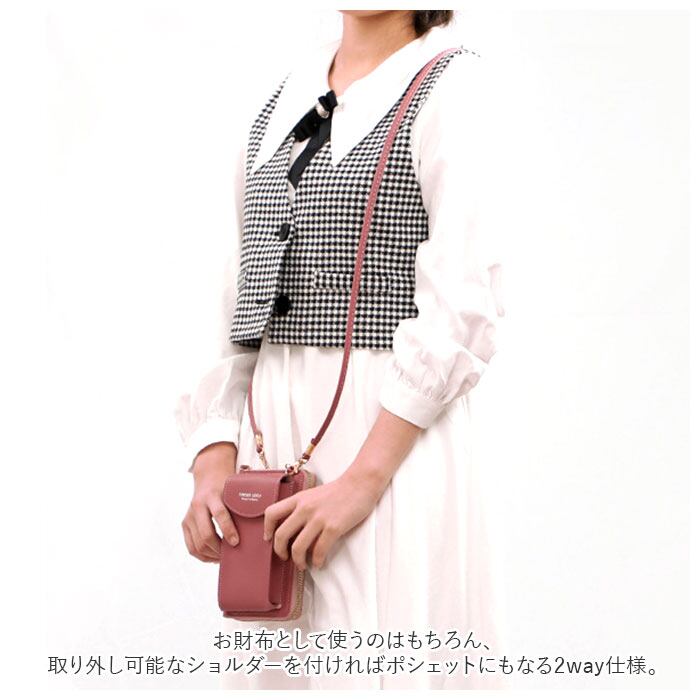 ・お財布として使うのはもちろん、取り外し可能なショルダーを付ければポシェットにもなる2way仕様。