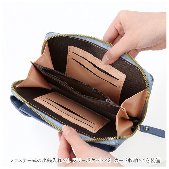 ・ファスナー式の小銭入れ×1、フリーポケット×2,カード収納×4を装備