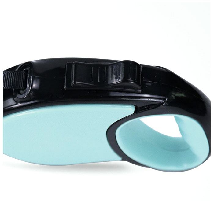 ・リードの長さ調節は簡単ワンタッチ!リード先端のナスカン金具を首輪に取り付けて、ちょうどよい長さにリードを伸ばしたら、ボタンを親指で前にスライドさせるだけ!