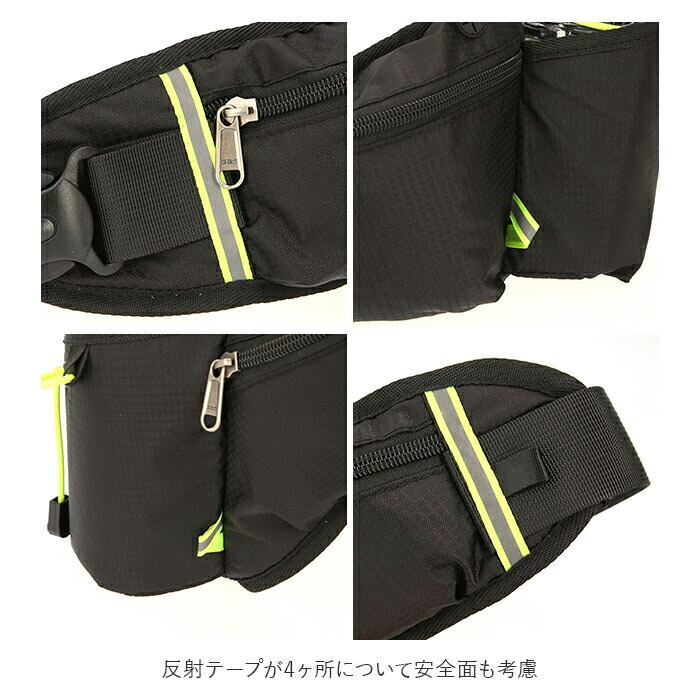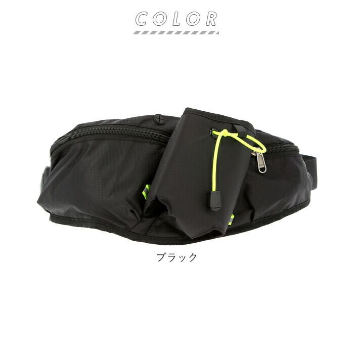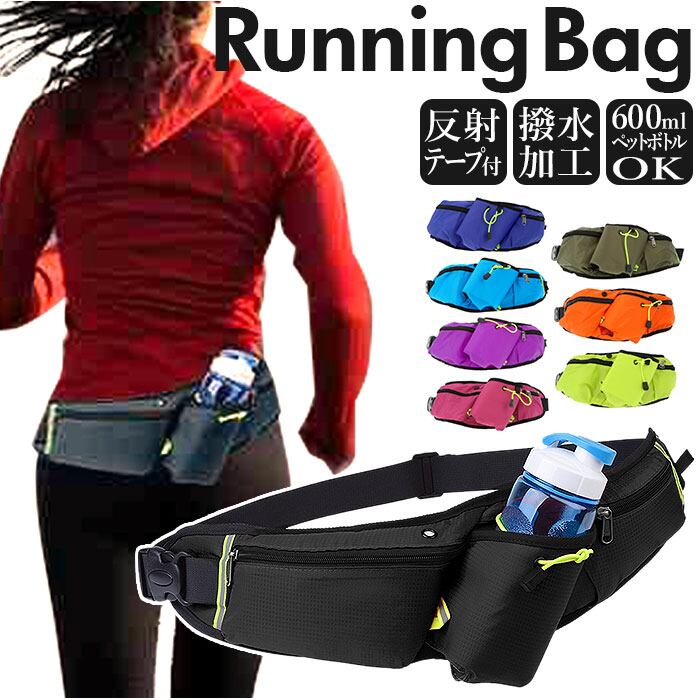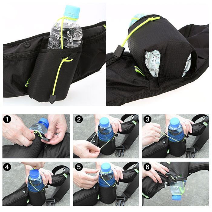 ・ゴムホルダーが付いているから、600mlのペットボトルを入れても落とさない!お散歩やスポーツ時に便利なランニングバッグ♪