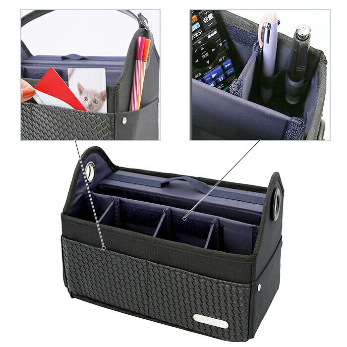 ・コスメやベッドサイドのメガネや小物類、車内の細々したものをまとめる車用の収納バスケットとしても活躍◎