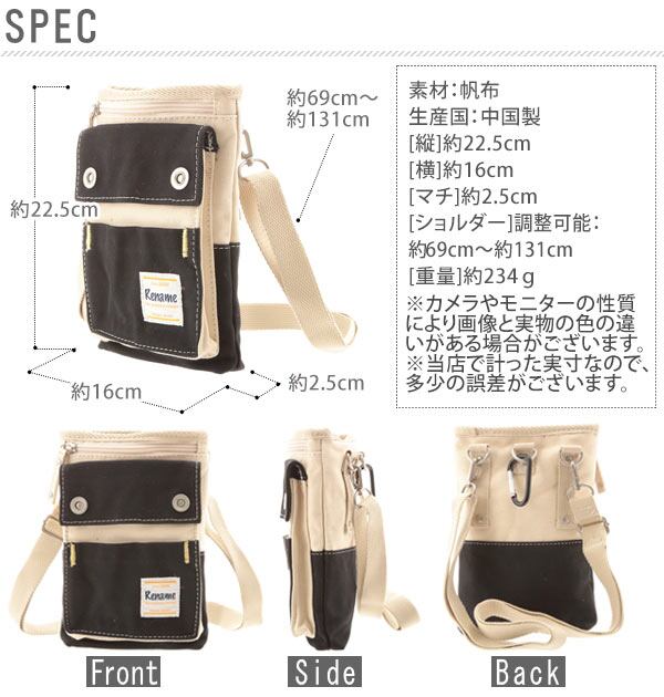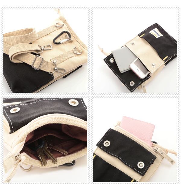 本体収納は大きめのスマホや二つ折り財布なども収納可能!必要最低限の荷物が入り軽い帆布生地を使用しているので、ちょっとしたお出かけにピッタリ。