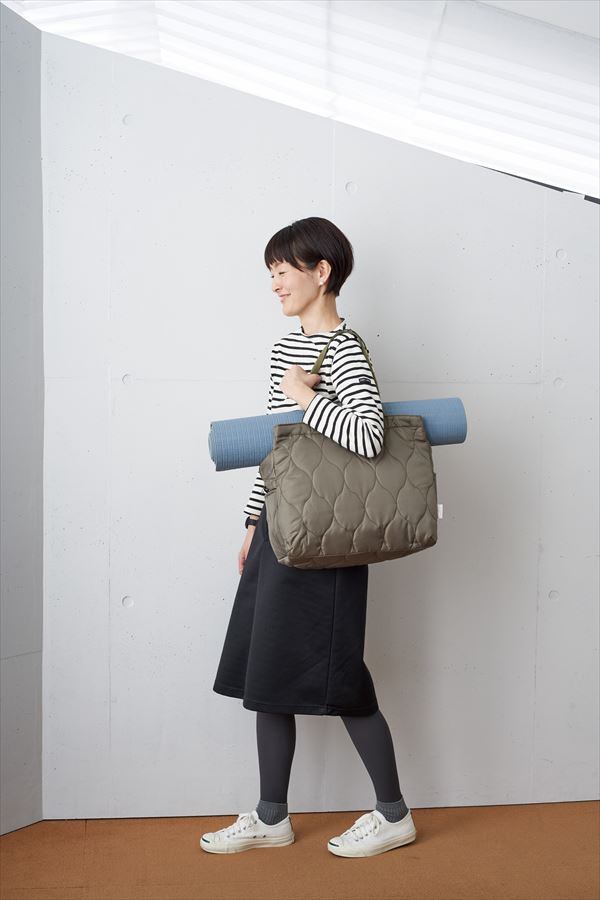 ・ガバっと開いて使いやすい口元のファスナーにはリング引き手が付いているので、開閉もスムーズです。ジムのロッカーにちょうどよいサイズ感で、ヨガマットもぴったりフィット。靴を入れるのに最適なサイズの巾着が付いているのも嬉しいポイント!