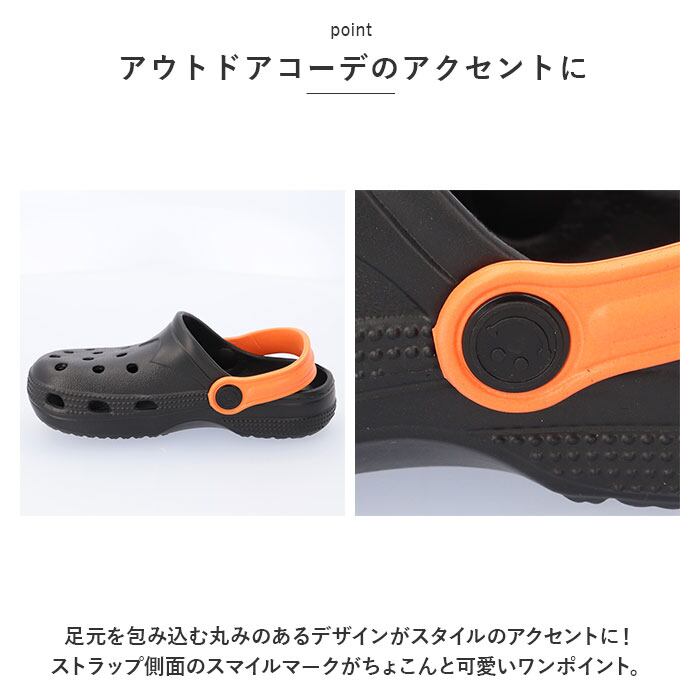 ・足元を包み込む丸みのあるデザインがスタイルのアクセントに!ストラップ側面のスマイルマークがちょこんと可愛いワンポイント。