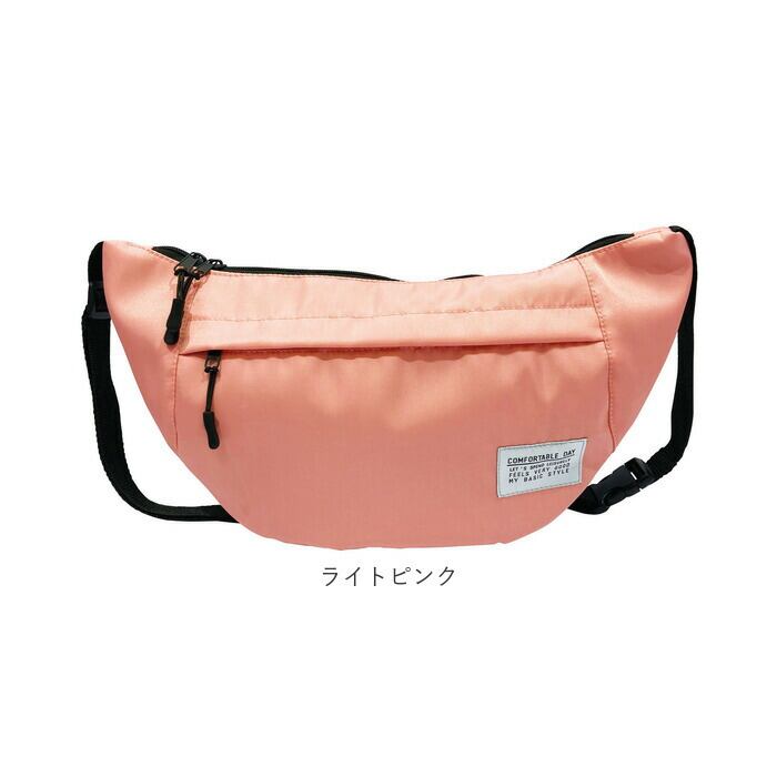 ・底が丸くなった、身体にラインに寄り添うような優しい半月型。ストレスなく持ち運べる軽量な生地を使用し、普段使いに最適。