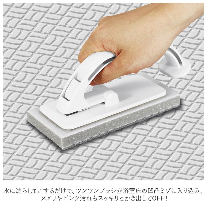・水に濡らしてこするだけで、ツンツンブラシが浴室床の凹凸ミゾに入り込み、ヌメリやピンク汚れもスッキリとかき出してOFF!
