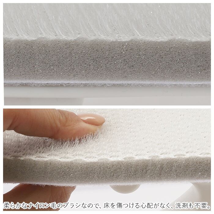 ・柔らかなナイロン毛のブラシなので、床を傷つける心配がなく、洗剤も不要。