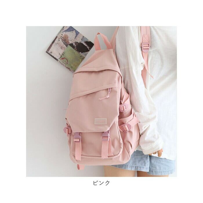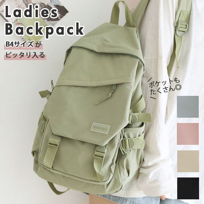 リュック 通学 女子 韓国 大容量 通販 リュックサック バックパック レディース おしゃれ 可愛い B4 軽量 軽い 高校生 中学生 シンプル カジュアル くすみカラー 黒 ブラック グリーン ベージュ ピンク ブルー 多収納 ポケット 旅行 おでかけ レディースバッグ