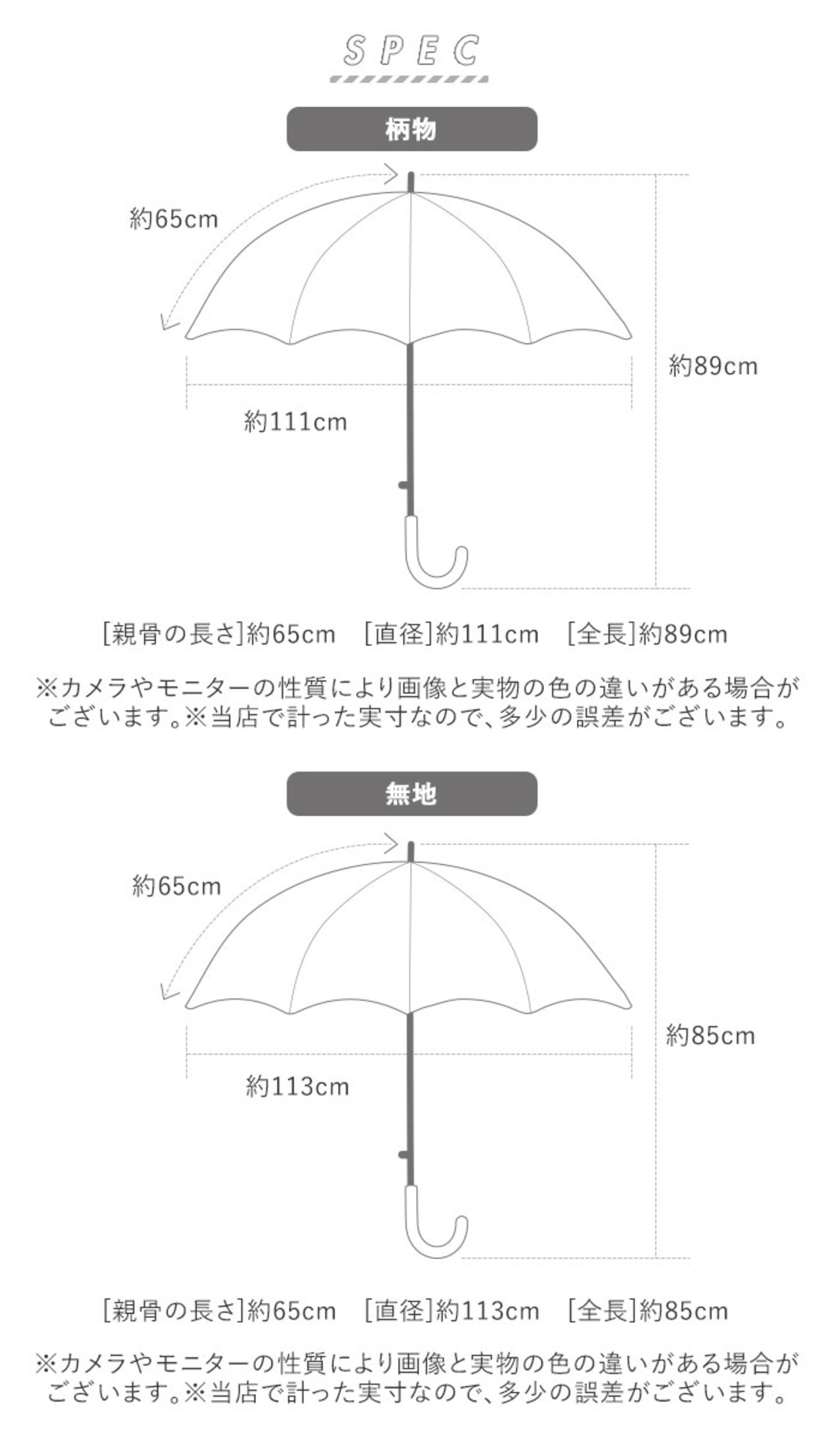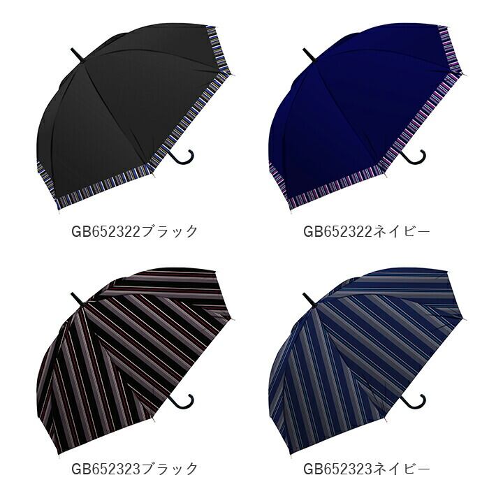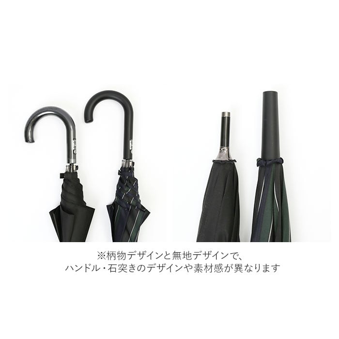 ・普段使いしやすいデザインをラインナップ!落ち着いた色合いのバリエーションで、フォーマルシーンでも活躍。(※柄物デザインと無地デザインで、傘の直径と全長サイズ、ハンドル・石突きのデザインや素材感が異なります。)