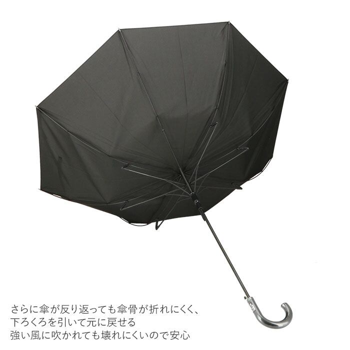 ・さらに傘が反り返っても傘骨が折れにくく、下ろくろを引いて元に戻せる耐風設計!強い風に吹かれても壊れにくいので安心。