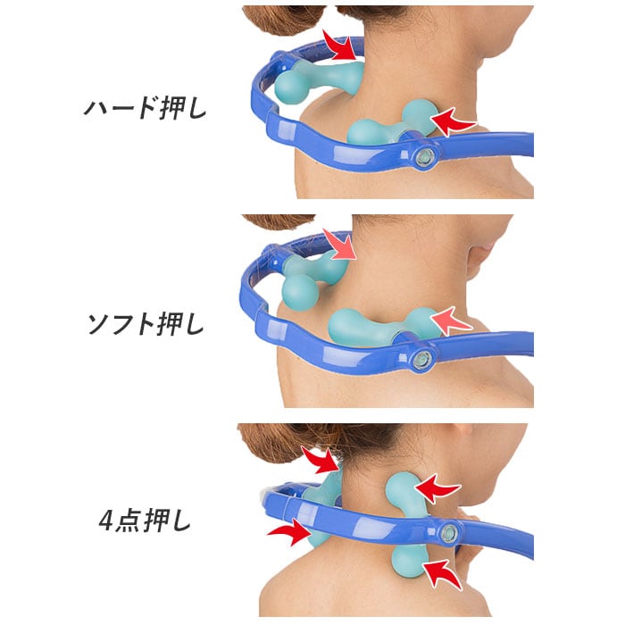 ・回転式のヘッドは、90度間隔で回転させることができ、ハード押し・ソフト押し・4点押しの3通りの押し心地が選べる!