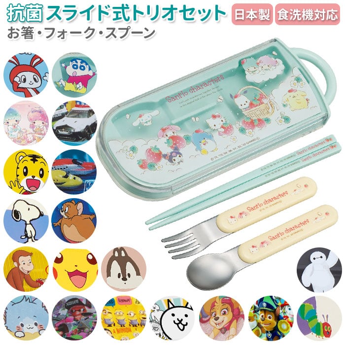 ・人気キャラクターの絵柄がキュート♪キッズ用のお箸・フォーク・スプーンがケースに入ったトリオセットが登場。