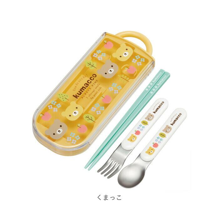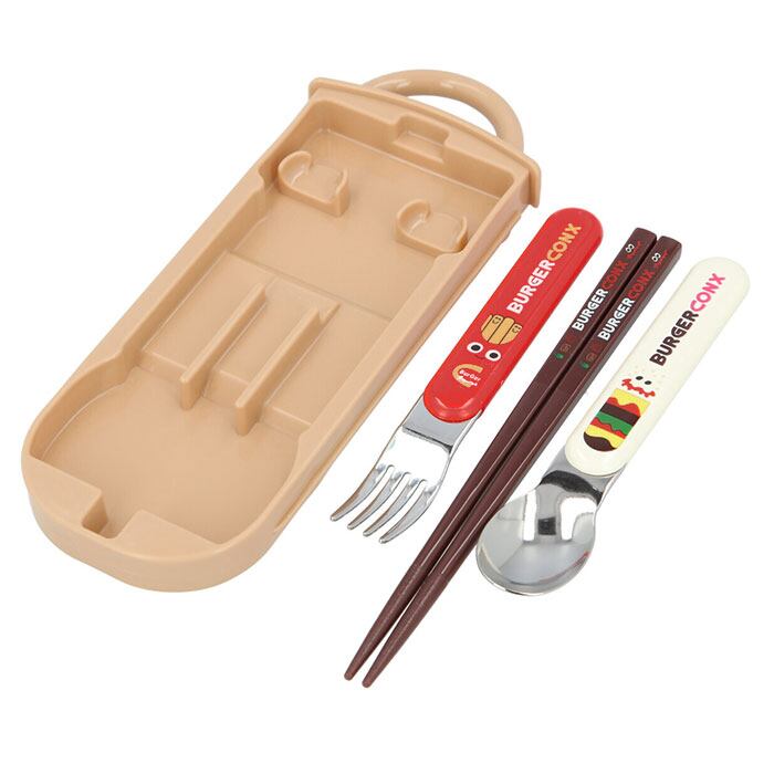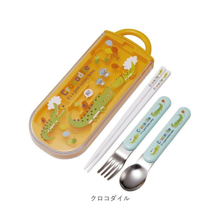 ・ポップなカラーと絵柄が可愛い、キッズ向けのスプーン・フォーク・お箸のトリオセット。