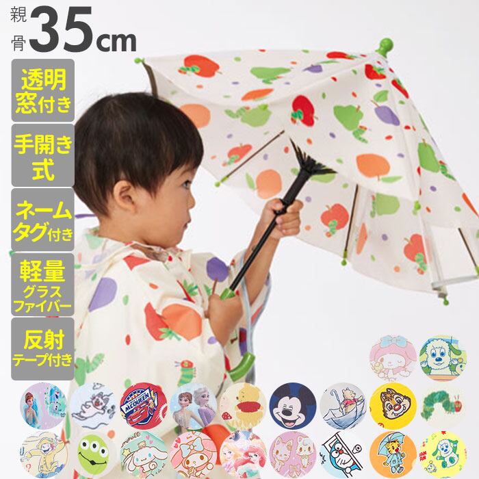 ・お子様の初めての傘にオススメ!大人気キャラクターの絵柄がかわいい「窓付き子ども用長傘・親骨35cmタイプ」が登場。