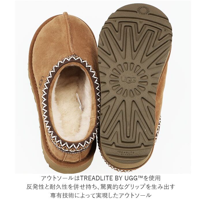 ・アウトソールはTREADLITE BY UGG(TM)(トレイドライトバイアグ)を使用。反発性と耐久性を併せ持ち、驚異的なグリップを生み出す専有技術によって実現したアウトソール。