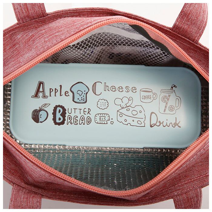 ・裏面はアルミ蒸着シート加工。内側のメッシュポケットに保冷剤を入れてファスナーを閉じれば、お弁当の時間まで美味しさ長持ち。