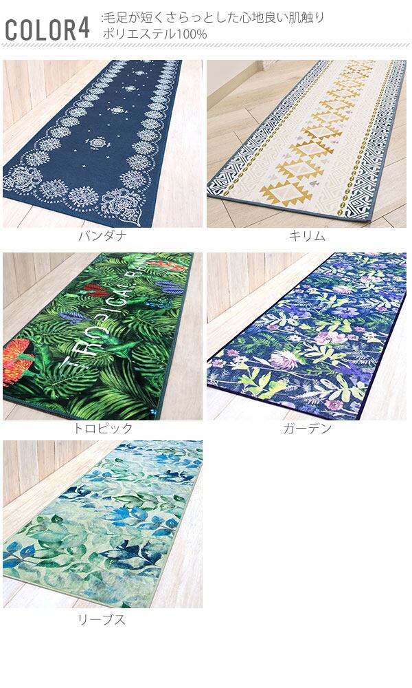 華やかな柄が魅力!使いやすい120cmのキッチンマットです。