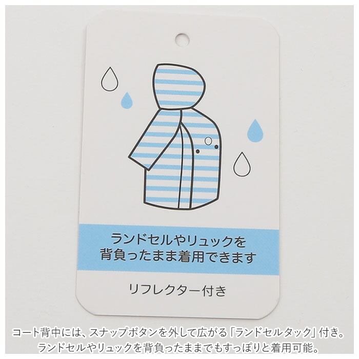 ・コート背中には、スナップボタンを外して広がる「ランドセルタック」付き。ランドセルやリュックを背負ったままでもすっぽりと着用可能。