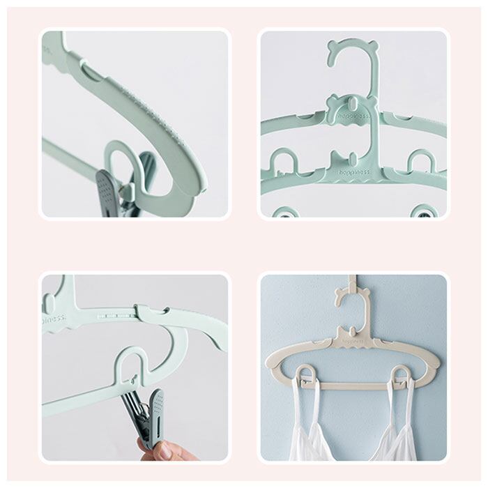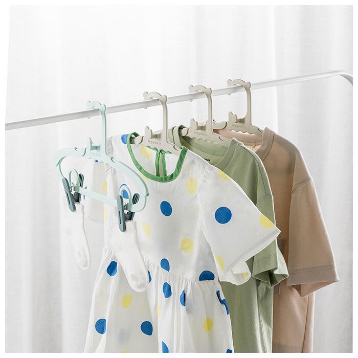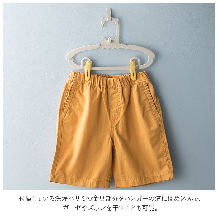 ・付属している洗濯バサミの金具部分をハンガーの溝にはめ込んで、ガーゼやズボンを干すことも可能。(※洗濯バサミは10個付属。)