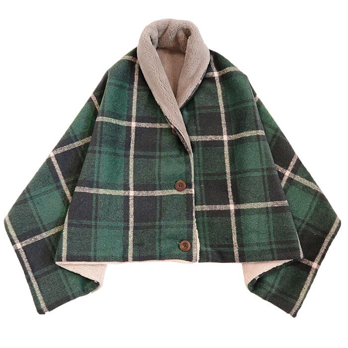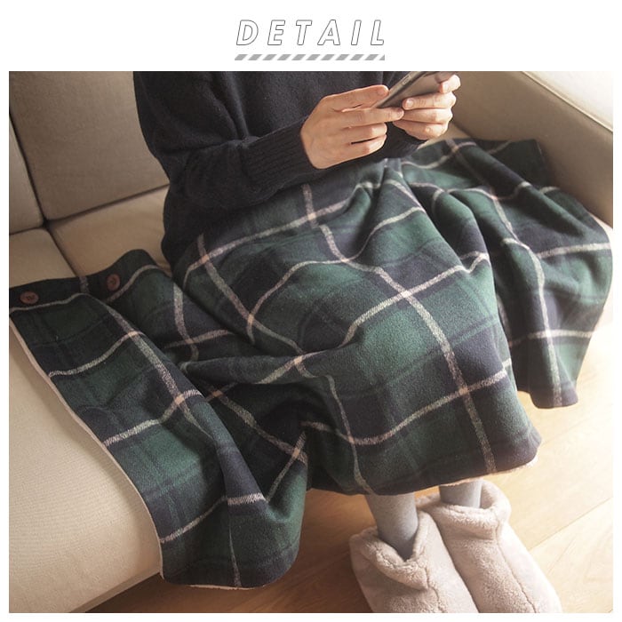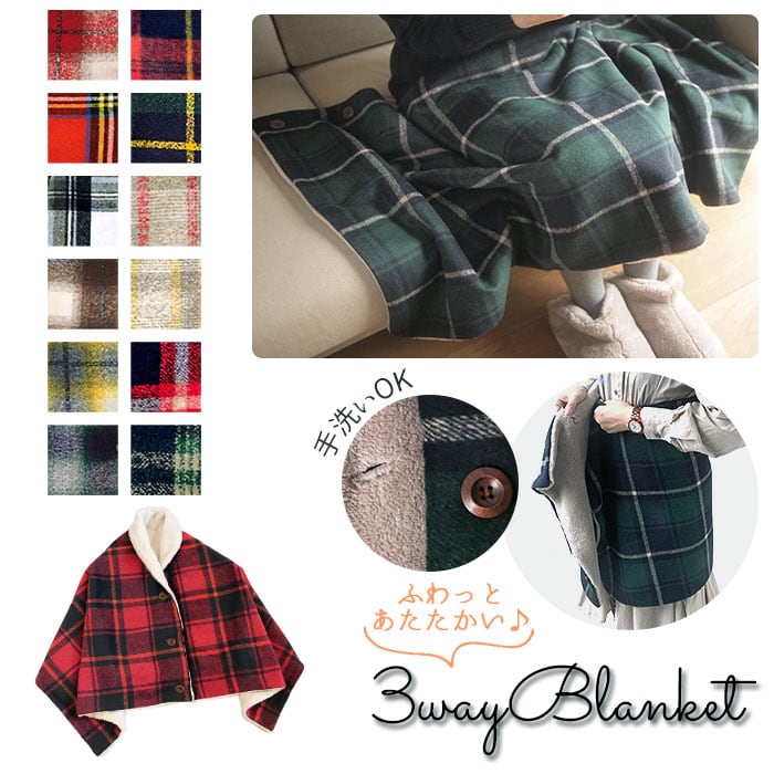 ・肩から羽織ってポンチョ風に、腰に巻いてスカート風に。もちろんひざ掛けとしても使える、3wayブランケット。