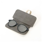 ・メガネのレンズ部分をケースの内側に包み、テンプル(つる)をバンドで留めるユニークなスタイルのメガネケース。
