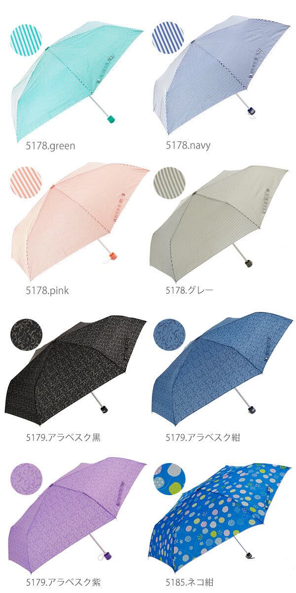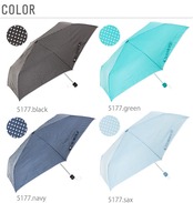 カラフルでかわいい、3つ折りの折りたたみ傘です。約175gと軽量なので、持ち運びも楽々です。