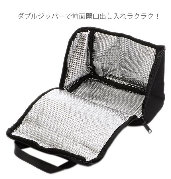 ガバッと開いて中身が取り出しやすい保冷ランチトートです。ファスナーが上部だけでなく、サイドまであるので、下までガバッと開けて中身が取り出しやすい。男性サイズの弁当箱も入るゆったりサイズなので、いつもの保冷ランチトートよりもう少し入ります。