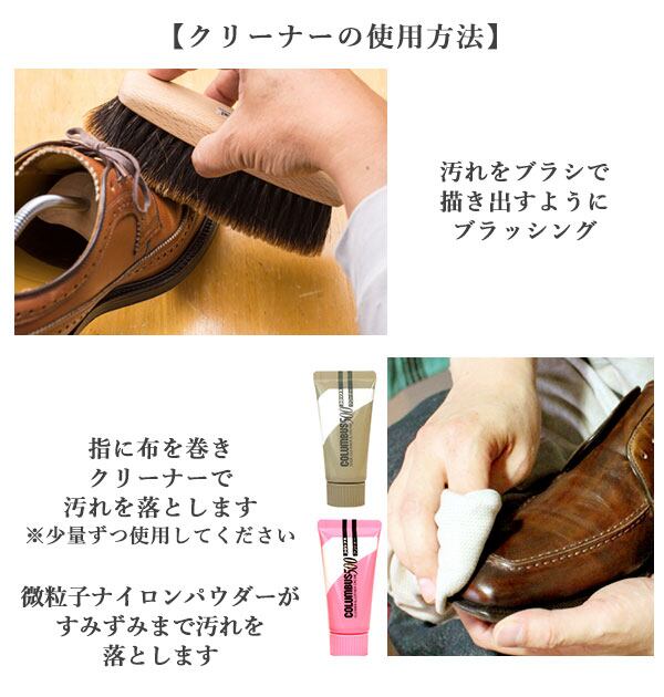 汚れや古いクリームなどを落としながら、革にしっかりとしたツヤも与える、新しい中性タイプのクリーナー。コラーゲンを加え、革本来のしなやかさを保ちます。防カビ材配合で革をカビから守ります。