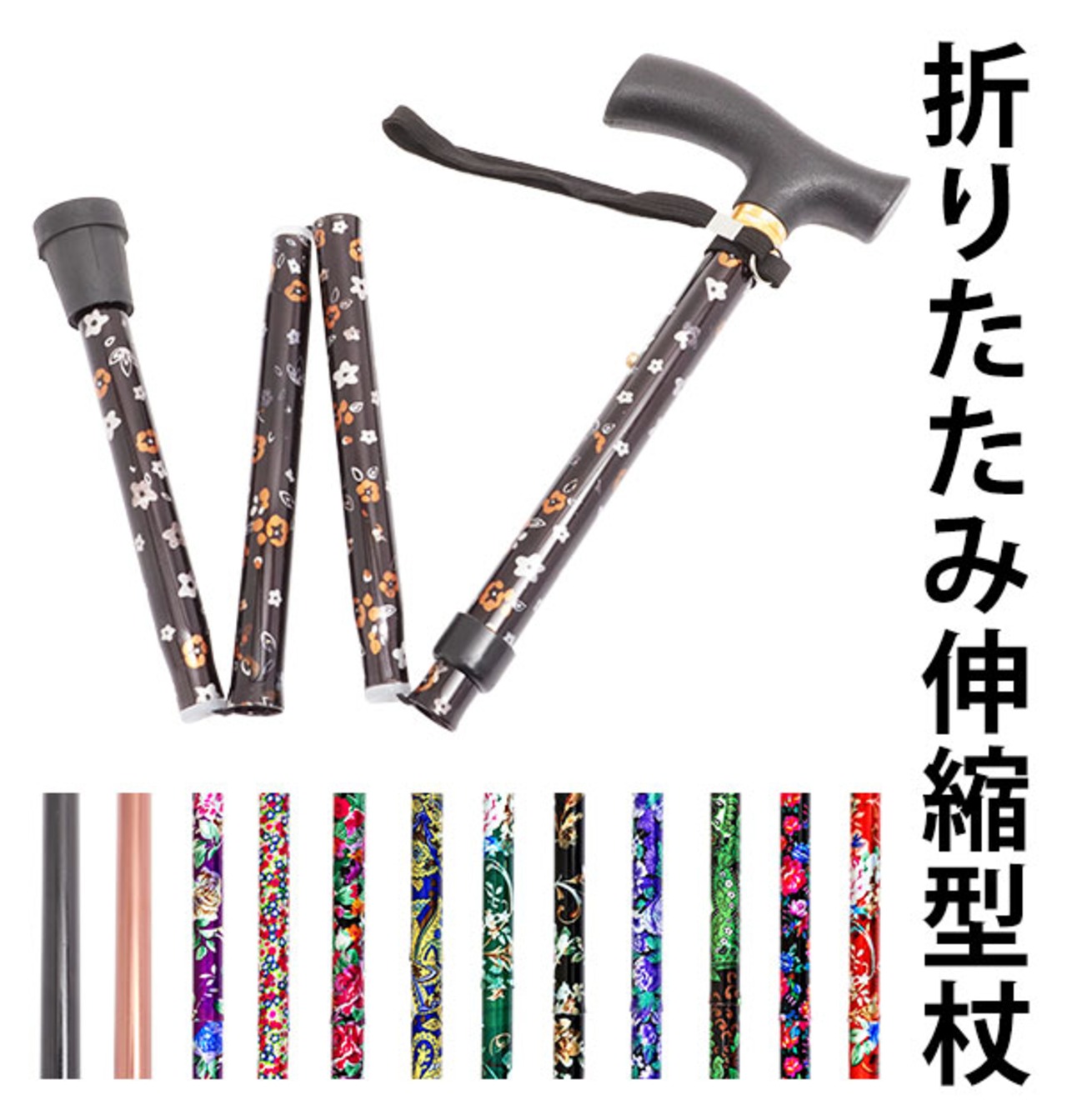 お出かけ、旅行で邪魔にならない折りたたみ式の便利な杖です。